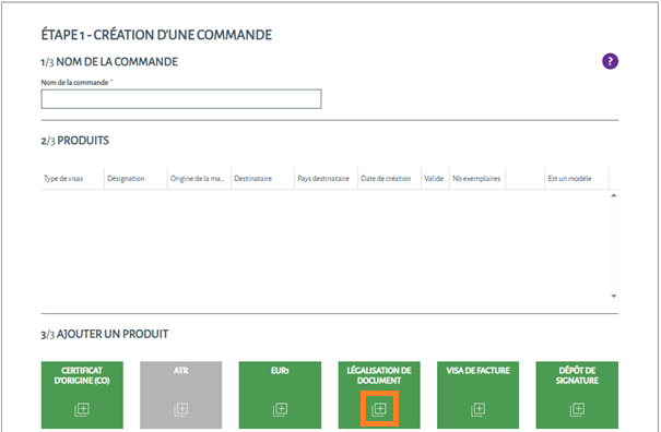 Passer UNE commande DE LÉGALISATION