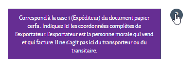 Lorsque vous passez votre souris sur le point d’interrogation, la case violette apparaît. Celle-ci disparaît lorsque la souris est déplacée.