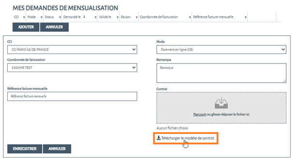 Si vous êtes mensualisé (hors CCI Paris et Essonne) : vous retrouverez vos factures dans le menu Commandes, sous-menu Factures mensuelles.