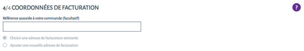 Lors du passage de votre commande, à l’étape 3 - paragraphe 4/4, renseignez votre référence (ex. : numéro de bon de commande).