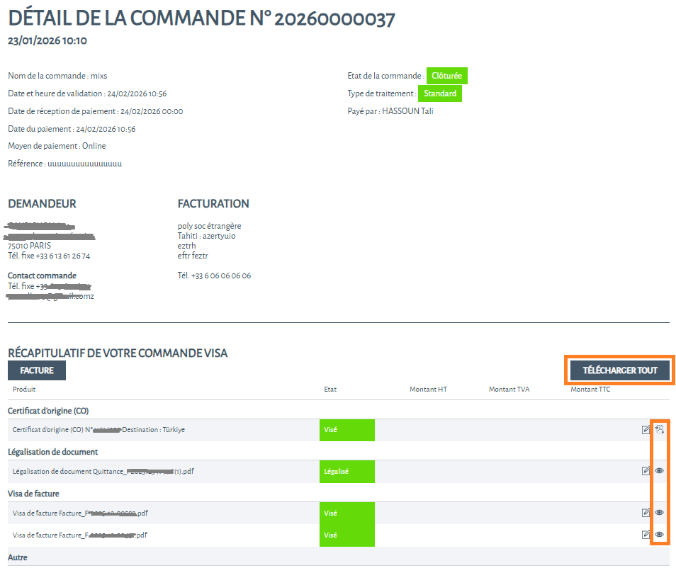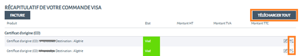 Commande finalisée, documents disponibles sur GEFI, sur le site de la CCI ou en cours de livraison en fonction de votre demande