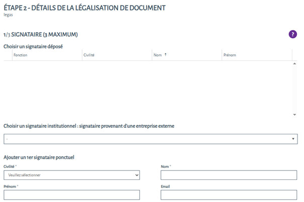 Quel signataire dois-je sélectionner pour ma légalisation de document ?