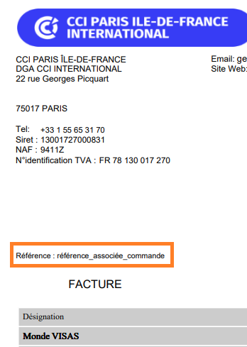 ⚠️ ATTENTION : sauf pour Paris et l’Essonne. Dans ce cas il faut prévenir son interlocuteur de facturation à la CCI.