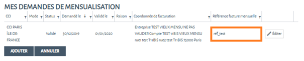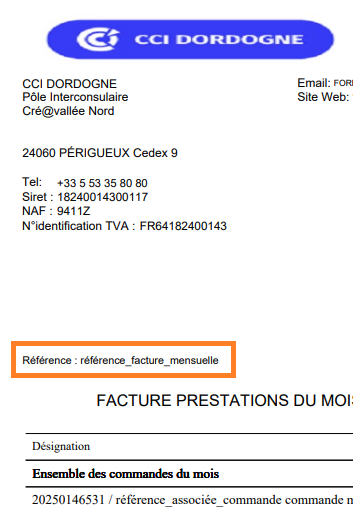 Cette référence apparaîtra en haut de toutes vos factures mensuelles tant que vous ne la modifiez pas.