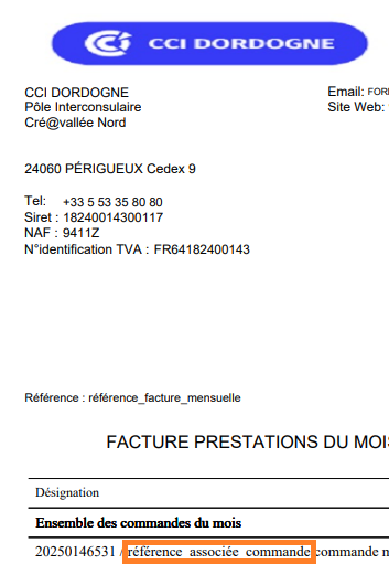 Oui, c’est possible, la façon de la renseigner dépend de votre mode de facturation (mensualisé ou à la commande) et du type de référence que vous souhaitez ajouter (référence de commande ou référence globale mensuelle).