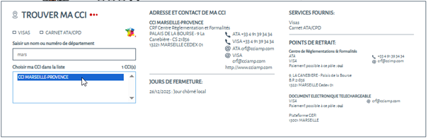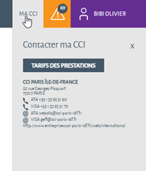 Les coordonnées de votre CCI s’affichent pour que vous puissiez la contacter directement.