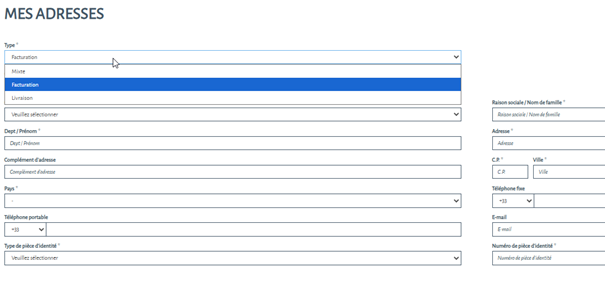 Créez une nouvelle adresse (facturation ou mixte)