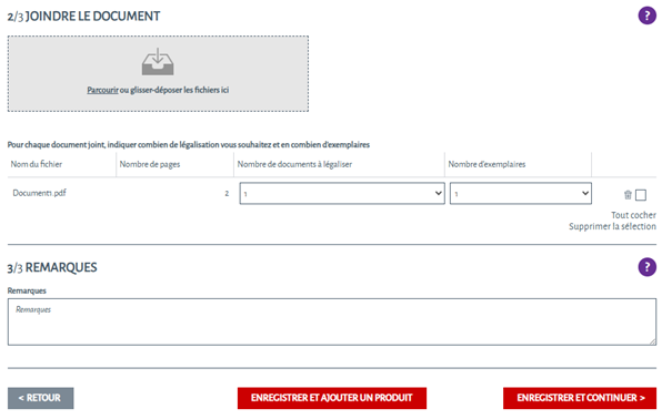 Ajoutez une légalisation de document à votre commande en cliquant sur le + correspondant.
